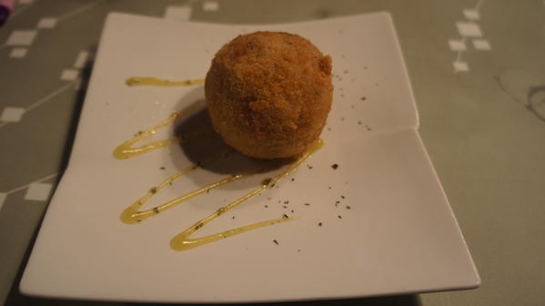 櫻花蝦青蔬炸飯糰-炸到黃金般酥黃的脆皮外表,裡面還包著櫻花蝦