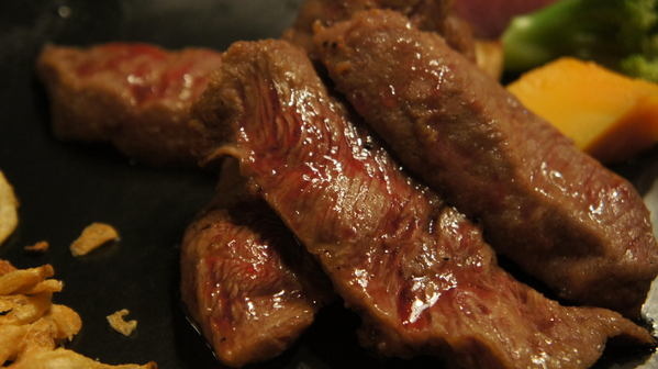 外,可以再搭配黑楜椒醬或紅酒醬來增加口感,牛肉的味道除了滑嫩
