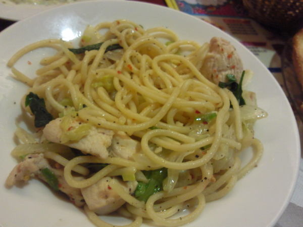 蒜香雞肉義大利麵-整道菜色充滿的蒜香的味道,而雞肉的份量也都