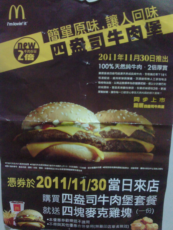 話說上週在三重麥當勞看到在11月30日當天買新推出的四盎司牛