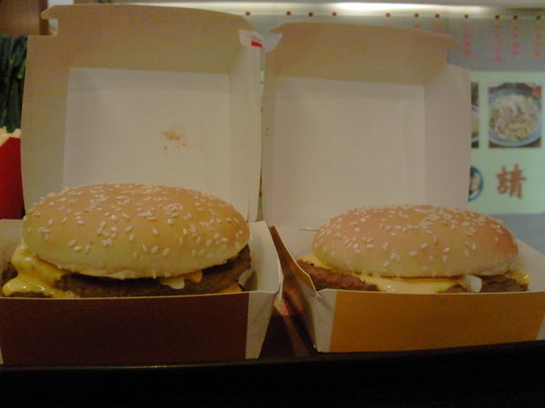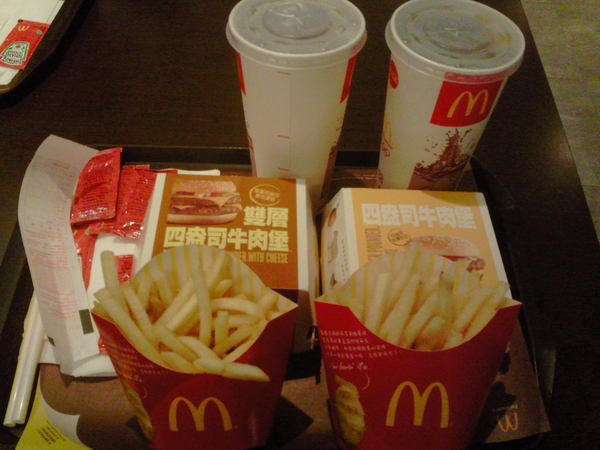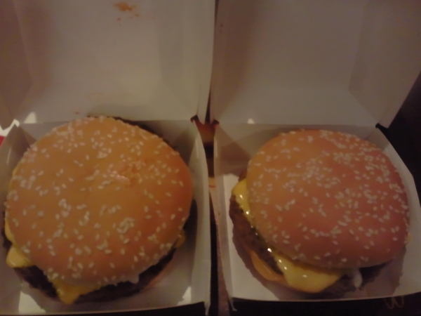 揪人在附近的麥當勞點了單層跟雙層的四盎司牛肉堡套餐,沒想