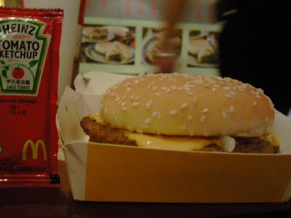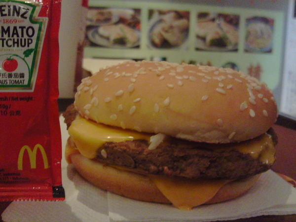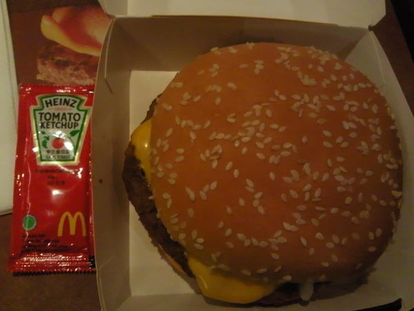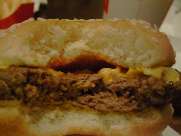 麥當勞雙層四盎司牛肉堡厚度-可惜沒對好焦距,不過跌起來的
