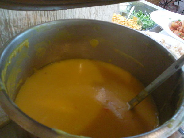 南瓜湯-濃郁但不重鹹,嚐起來口感還算是ok,不過用彼得兔當