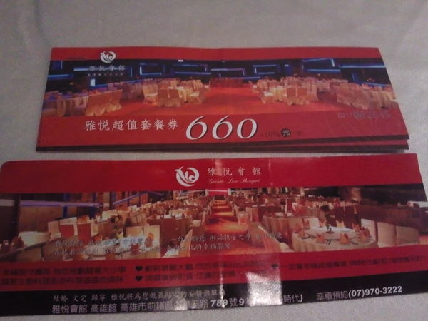店婚宴用餐一樣的來服務,食材的部份以餐券標示 660元這個價