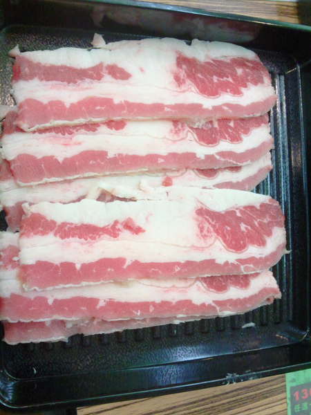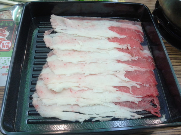 肉類--有牛五花、羊五花、梅花豬、鮮魚片共四種普通肉片選擇,而想