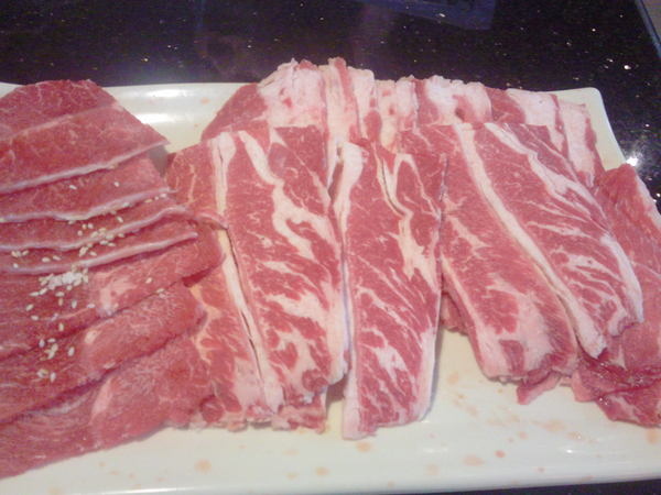 提供多種肉類供選擇,但都會放在同一個大盤子裡,問服務生有些知道