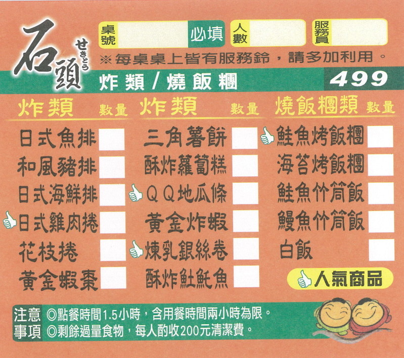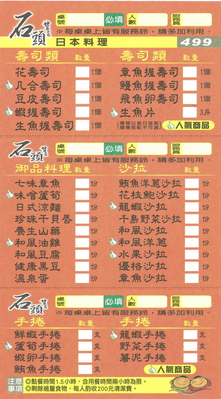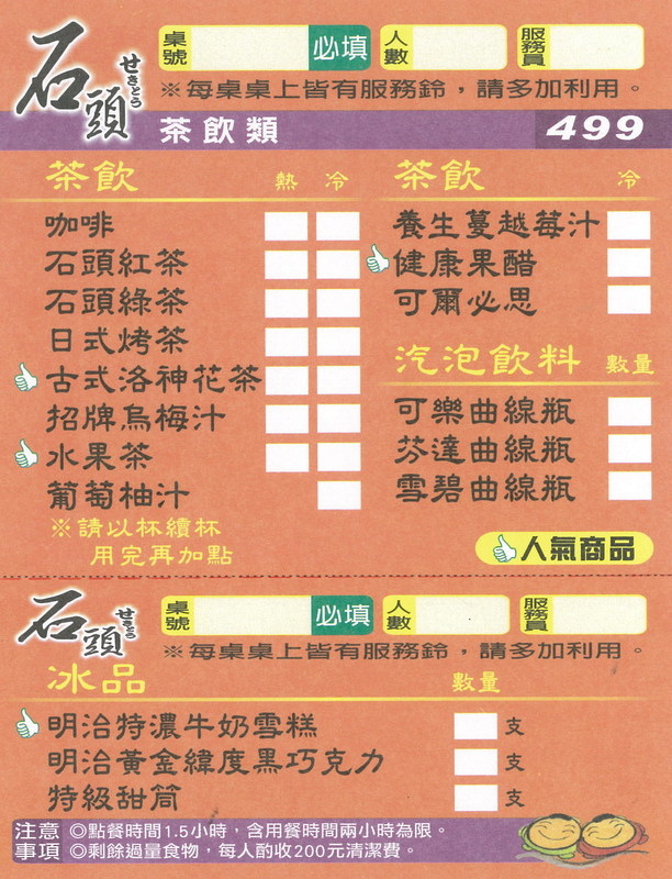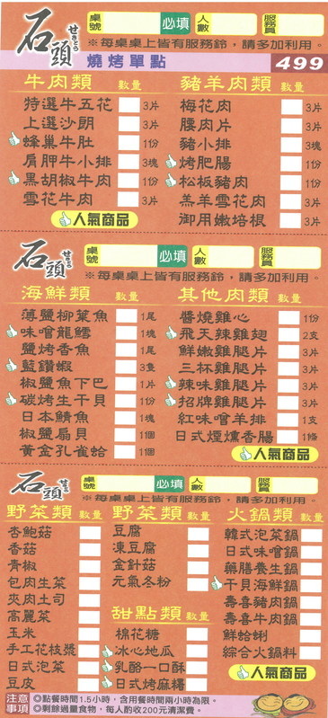 MENU-兩次來用餐都是 499的餐點,寫完數字和桌號之後按下服務鈴交