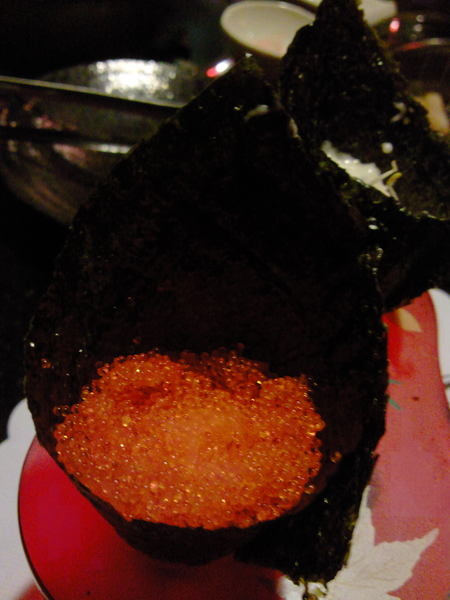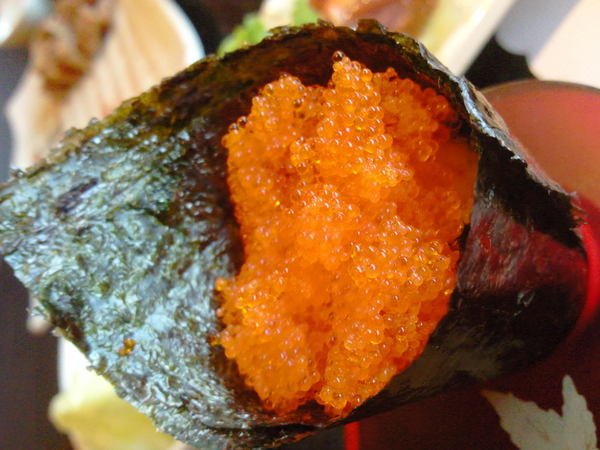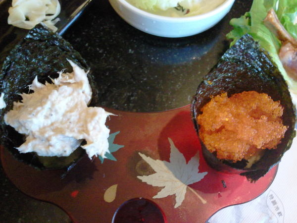 蝦卵手捲-蝦卵給的份量很多,吃起來很有飽足感,不過不知道是不是