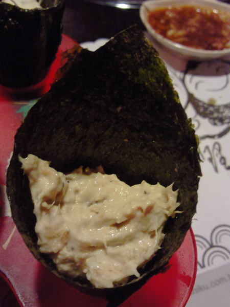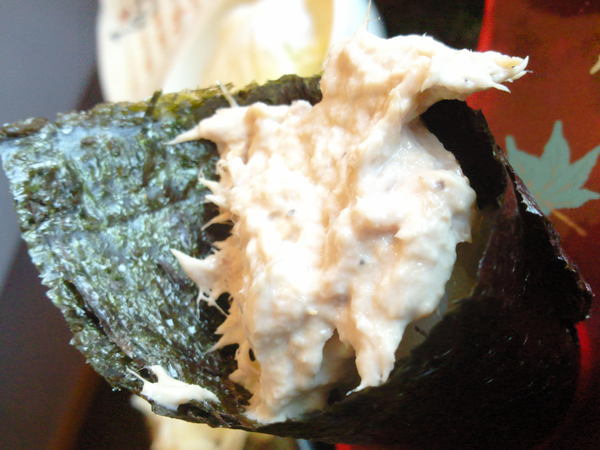 鮪魚手捲-鮪魚的份量也是不在話下,不過因為海苔容易軟掉,所以一