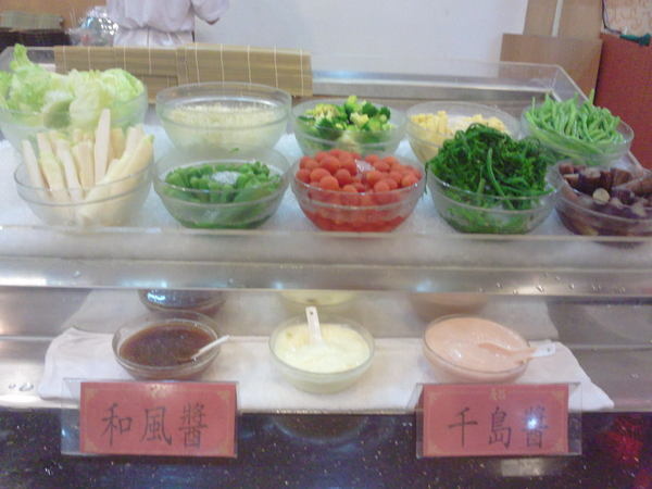 沙拉吧--提供三種醬料調配,只是他的菜色讓我有點無言罷了