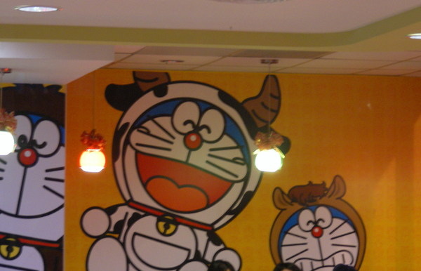 用餐處的地方也在牆邊貼了哆啦生肖的牆壁貼紙,但真的也只