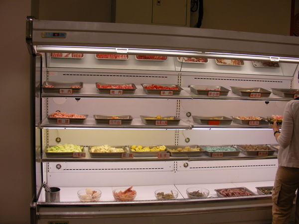 火鍋料區-主要是一般火鍋店平價的一些火鍋料與普通的牛豬羊肉,肉質極普通,二樓則是冷藏櫃放一些比較常食用的火鍋料,但主要的東西還是要去一樓拿還是有些不方便