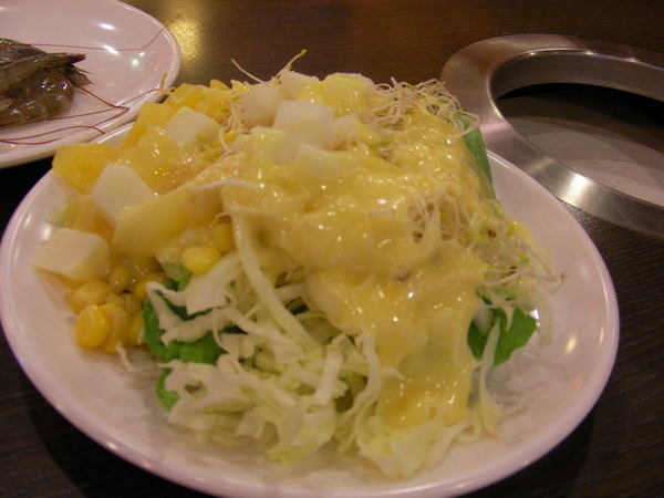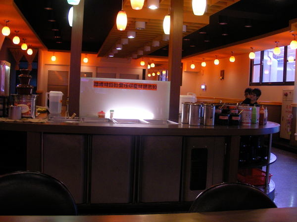 這家店算是一家吃粗飽的餐廳,沒有太多的裝潢,只有簡單的佈置以及平實的價位,比較特別的應該就是這個價位還有巧克力噴泉可以沾棉花糖、餅乾棒、水果來吃,即使是離峰時間來覓食,棉花糖還是常常被搶奪一空!火鍋料與一般的餐廳差異不大,肉類及海鮮算是普普,不用期待會有霜降級的牛肉出現,小菜及炸物加起來約有56盤左右,剛出來時最好趕快吃,冷掉後就沒啥嚼勁!沙拉提供橙醬及千島醬兩種,可自由搭配喜歡的菜色來吃,水果果凍也是個不錯的選擇!