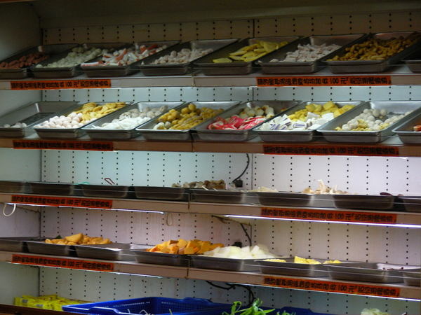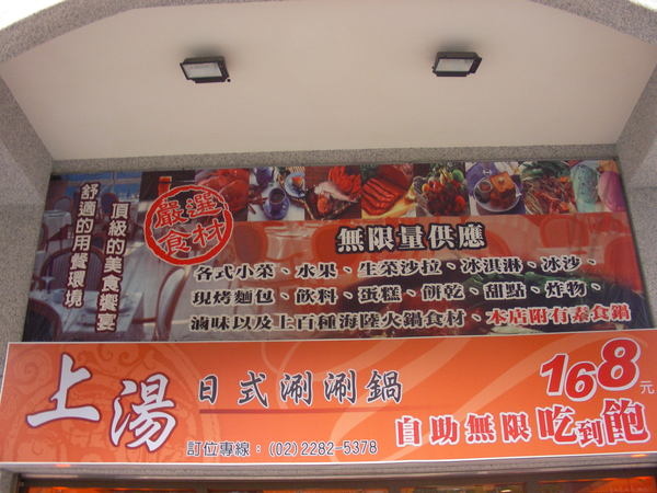 老實說,這一個地點除非是當地人,不然正常來說應該都很難找的到位在蘆洲郊區一堆新蓋完的房子裡,連google、雅虎、UrMap查到的都不是正確的位置,甚至標示無此地址,就知道地點有多難找了!路上同時還有四季百匯、寶神...等涮涮鍋吃到飽的店,相信日後發展起來也會是火鍋的一級郊區戰區!店內陳設略為昏暗,並無太多的室內設計及佈置,座位蠻多的也不會很擁擠。場地中央部分設有各類的食材及調味和餐點提供鄉民們取用