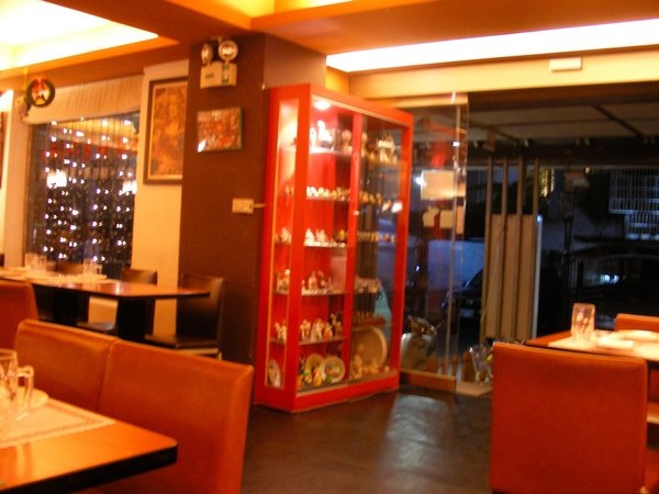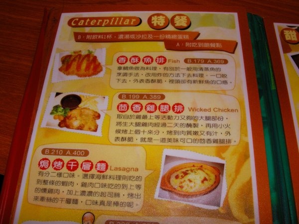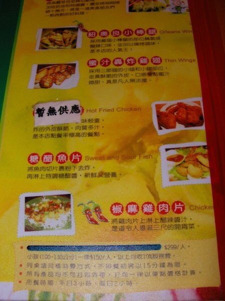 環境:位在東區國父紀念館附近的小巷裡,地點位處一樓但是有挑高約半公尺左右,餐廳裡陳設略有美式氣氛,門口有可樂的一些收藏品擺飾,牆壁有卡通的一些拼圖,加上天花板一些賤兔的吊飾,(其實說卡通餐廳還比較實在)適合年輕人來這邊打牌聊天以及家聚的好地方