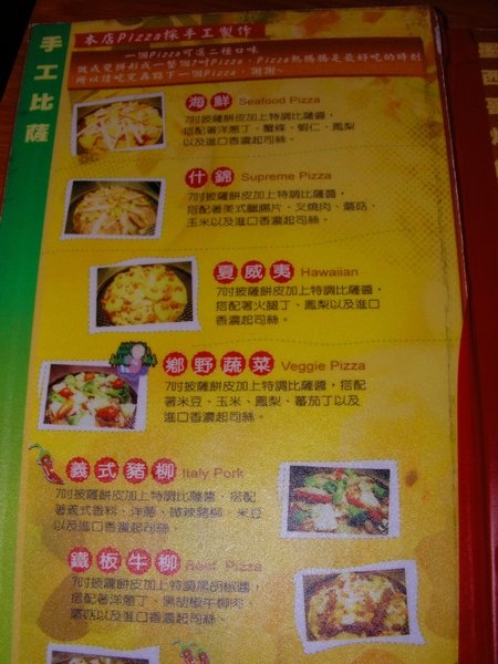 餐點:沙拉、水果、飲料、手工pizza、義大利麵、烤雞翅、炸雞柳、蛋糕、冰淇淋...等