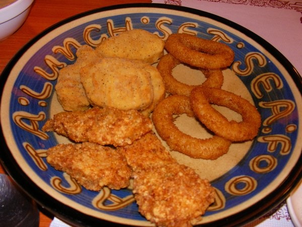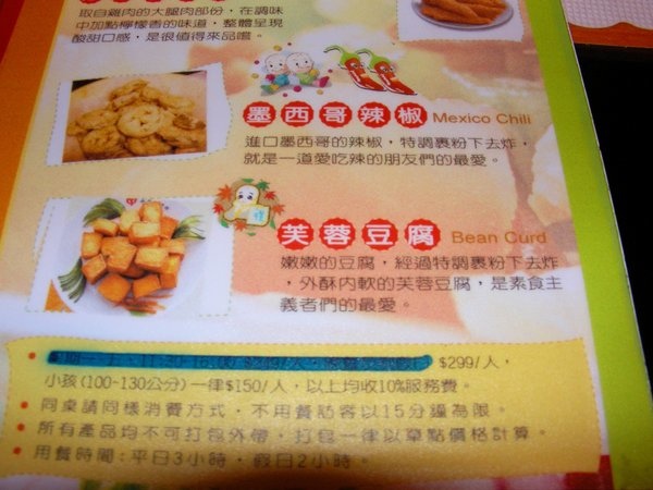 日式豬排、洋蔥圈、檸檬雞柳、芙蓉豆腐、紐澳良小腿棒、蜜汁雞翅