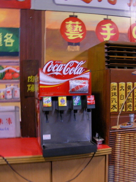可口可樂的飲料機,提供可樂、雪碧、香蘋及雪梨茶共四種