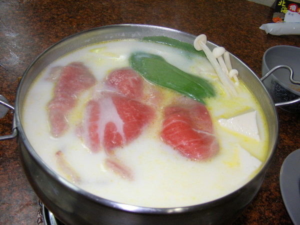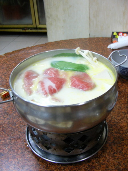 味道的一個牛奶小火鍋,幾片肉片加上青菜金針豆腐的火鍋料,如果