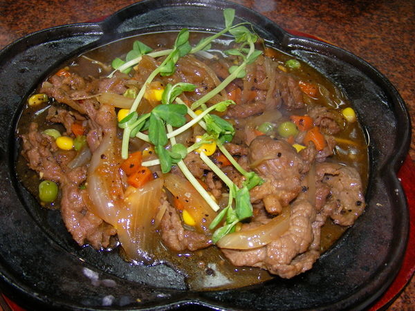 黑椒牛肉-肉片厚度適中,加上豆芽及洋蔥的提味,讓燒滾滾的鐵板