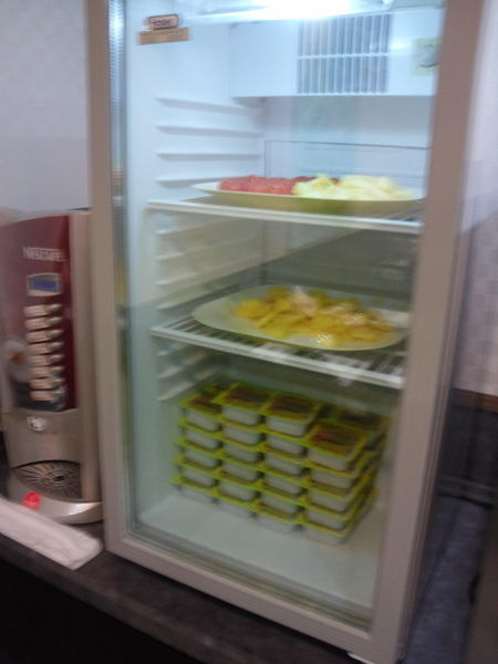 可口可樂玻璃櫃-供玻璃瓶的可樂跟雪碧飲用,至於下面的乳品則是霜