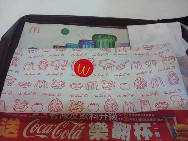 小麥克漢堡外包裝-紅色的包裝紙不像大麥克是用盒子裝的