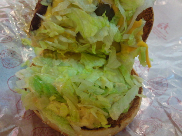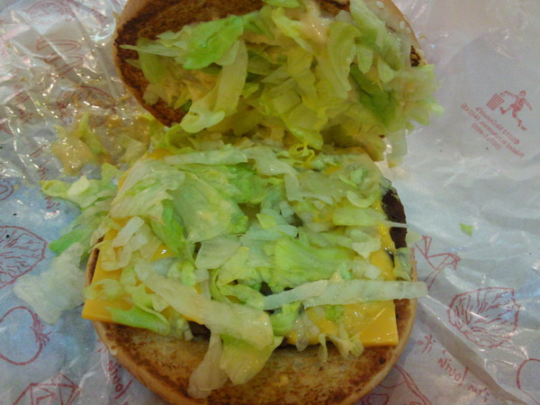 小麥克漢堡實體-因為有請服務生加生菜,所以看起來一整個爆
