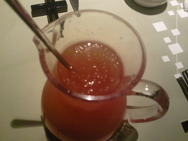 桑椹醋汁--帶有酸中帶甜的水果醋口感,冰冰涼涼的,吃起來相