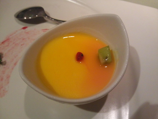 芒果優格布蕾-又軟又嫩的布蕾上面淋上香濃的芒果醬汁,味道