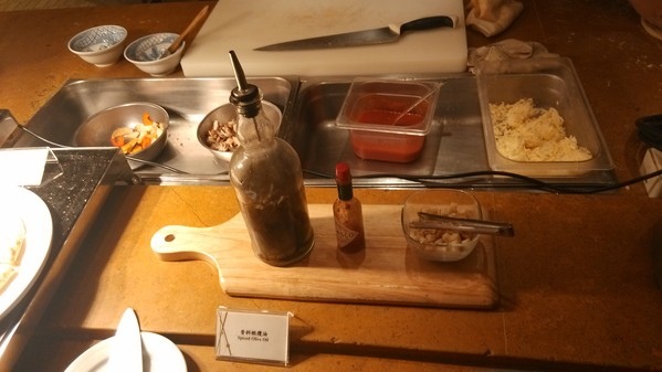 醬料-有油蔥酥、辣椒、蔥花、辣豆瓣醬、烏醋、蒜末