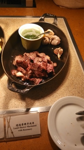 迷迭香烤羊肉串-後面沒記錯的話是印度薄荷醬,搭配迷迭香烤