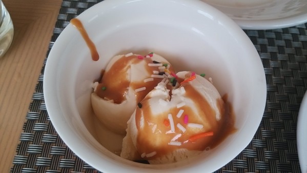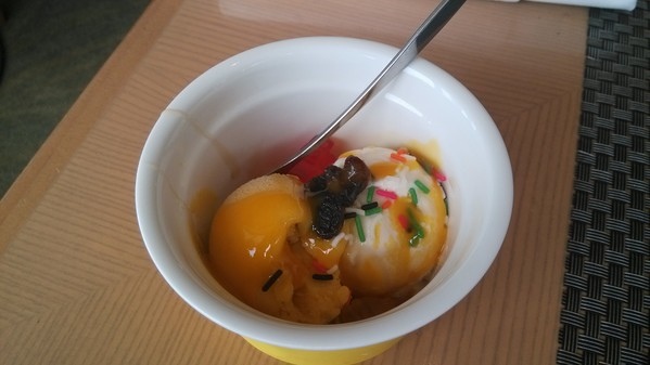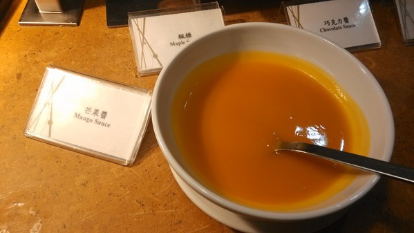 也很適合跟可麗餅的各式醬汁搭配,而芒果冰淇淋再搭上芒果醬