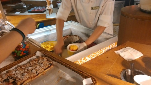 當天提供巧克力、覆盆子雪酪、芒果及香草共