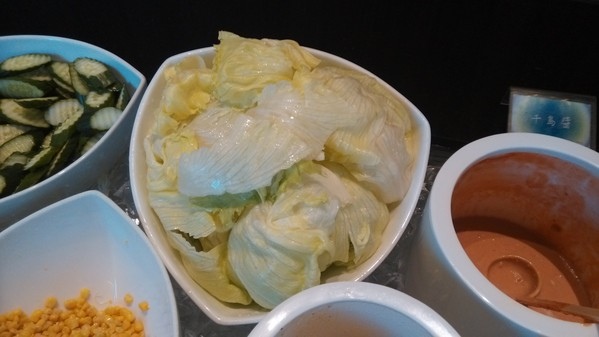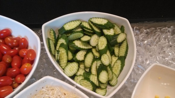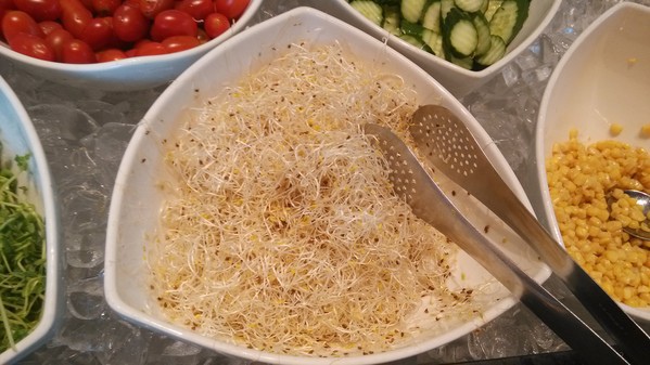 沙拉吧--有萵苣、彩椒、綠豆芽、小蕃茄、苜蓿芽、小黃瓜、玉
