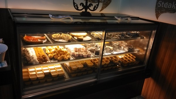 蛋糕甜點櫃--有多款的蛋糕跟甜點及布丁、綠茶凍等多種樣式,