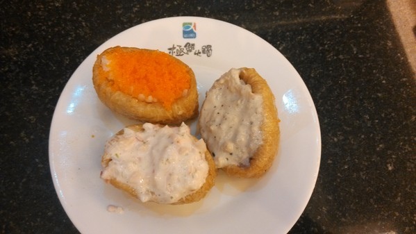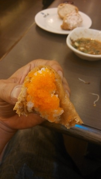 的壽司,因此也吃到了三塊直接現點現做的豆皮壽司,口感吃起