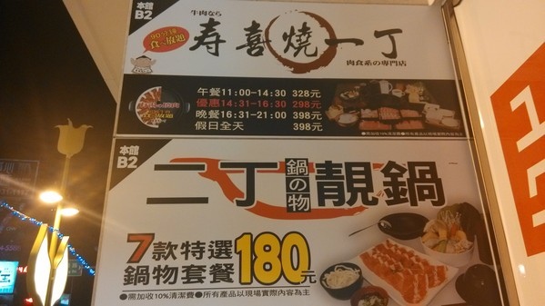 看板-其中一樓的看板將一丁與二丁放在一起,分別也是鍋物,