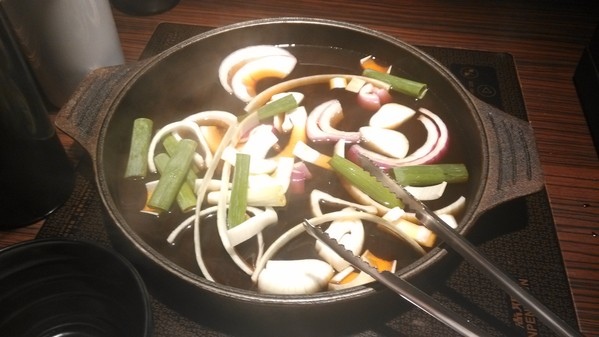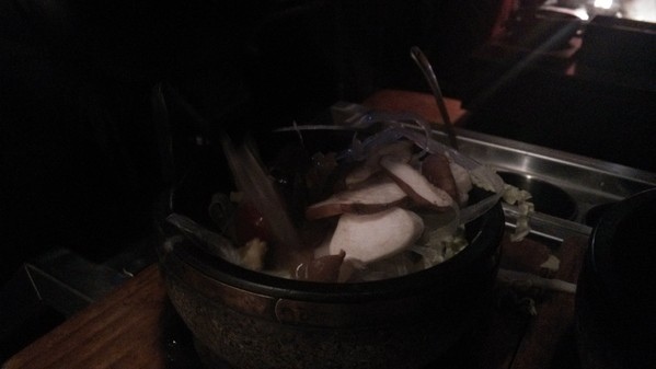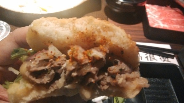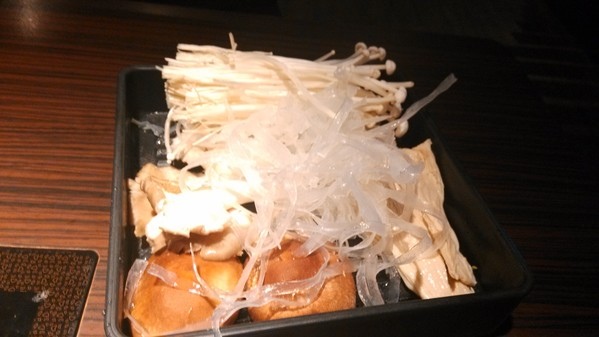來肉質的口感相當的滑嫩甚至是油嫩入口,另外拿肉片包覆石鍋