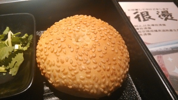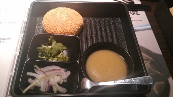 副食--古早味光餅搭配蜂蜜芥末醬與洋蔥和香菜,再夾幾片剛涮