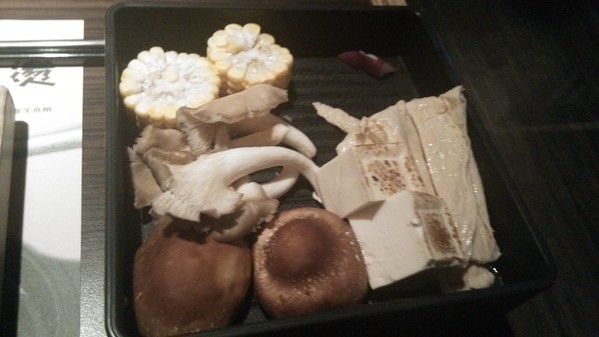 溫野菜--每人一份,吃起來就像是川燙悶煮過的香菇、地瓜、豆