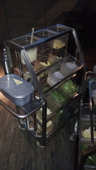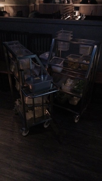 蔬食與推車--推車有時會放置在飲料區一旁,而一開始的時候感