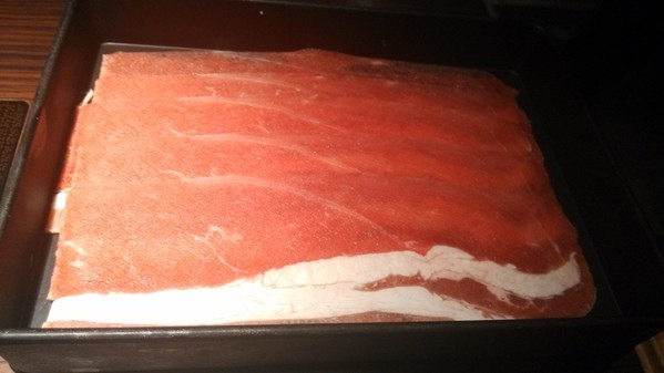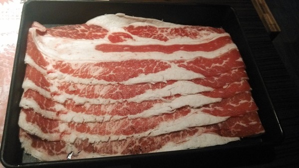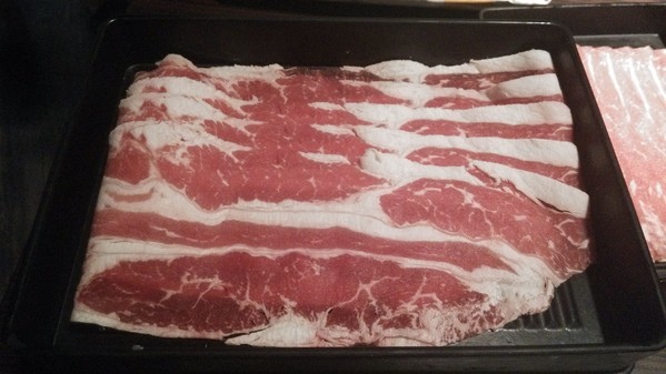 腹脇心-油花的分佈較少,在瘦肉的部份較多,大約涮個五到七