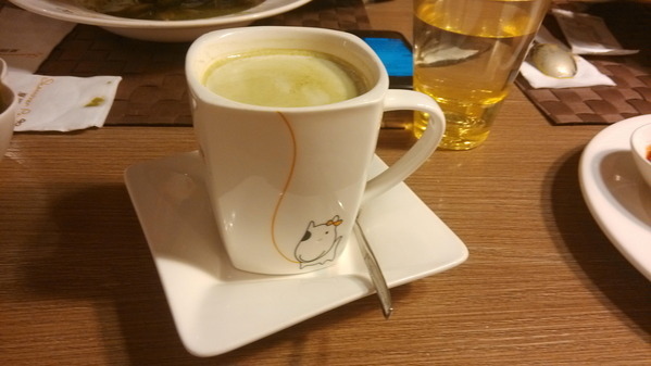 熱抹茶拿鐵-這杯子相當的可愛,連帶感覺杯子裡的抹茶拿鐵也