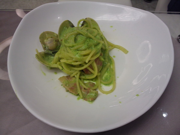 奶油青醬培根蛤蠣麵-麵條跟主廚鄉村義大利麵的口感不同,比