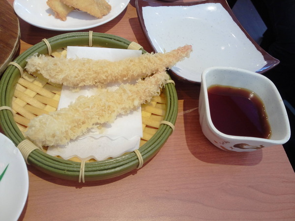 蝦天婦羅與沾醬-相對於黃金脆蝦,這個就好多了,雖然牠也沒
