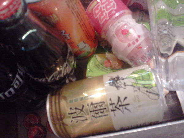 瓶罐飲料區--瓶罐裝的飲料下方都被冰塊給包著,但不知道是不是