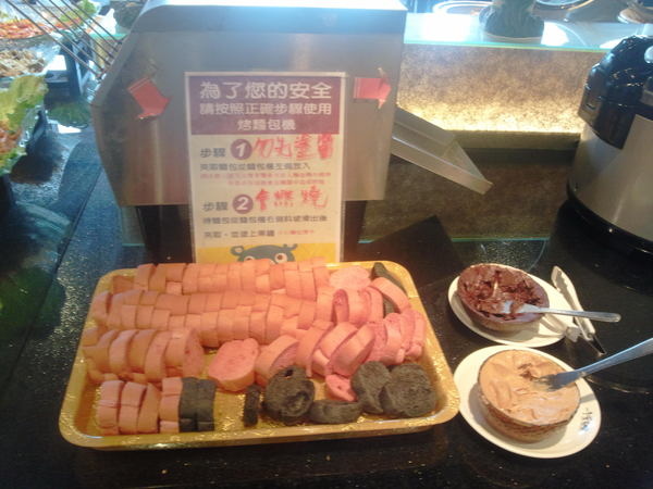 烤麵包區--提供切好的兩三款小麵包與巧克力和花生醬