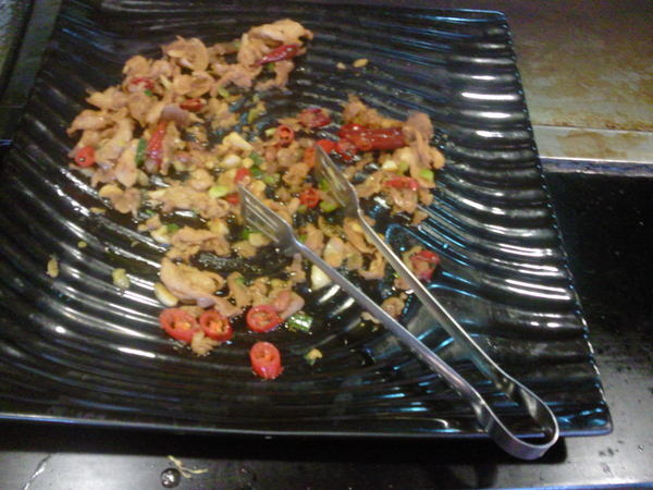 知道是拿一種鐵板炒肉片了