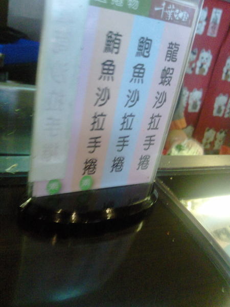 手捲區--提供龍蝦沙拉、鮑魚沙拉、鮪魚沙拉三款手捲供選擇,但